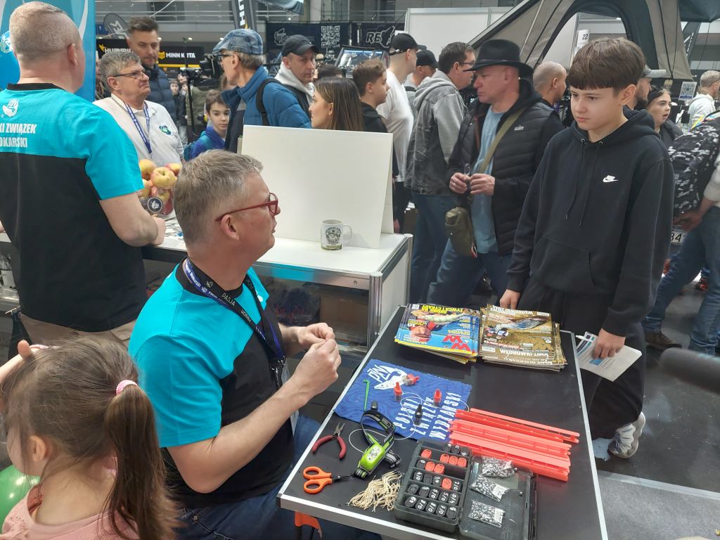 W tym roku na stoisku Polskiego Związku Wędkarskiego prezentowana była oferta skierowana przede wszystkim do najmłodszych pasjonatów, rozpoczynających swoją przygodę z wędkarstwem. Czołowi zawodnicy prezentowali metody oraz przynęty spinningowe, a kol. Wojtek Kamiński – pierwszy reprezentant Polski, który zdobył tytuł indywidualnego Mistrza Świata – na miejscu przygotowywał i wręczał na pamiątkę zestawy spławikowe.